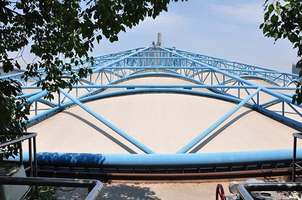 防腐效果強(qiáng)。由于膜結(jié)構(gòu)建筑結(jié)構(gòu)的特殊性,可將鋼架架設(shè)在外面,只有膜材部分接觸初沉池,基本解決了腐蝕問(wèn)題,而且將來(lái)也不用考慮維護(hù)問(wèn)題。
